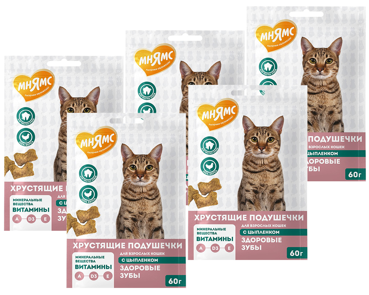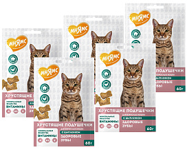 Лакомство для кошек МНЯМС ЗДОРОВЫЕ ЗУБЫ хрустящие подушечки цыпленок (60 гр х 5 шт)