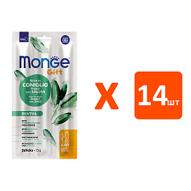 Лакомство для кошек MONGE GIFT DENTAL мягкие палочки для чистки зубов кролик, шалфей 15 гр (1 шт х 14)