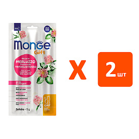 Лакомство для кошек MONGE GIFT SKIN SUPPORT мягкие палочки для здоровой кожи треска, красный клевер 15 гр (1 шт х 2)