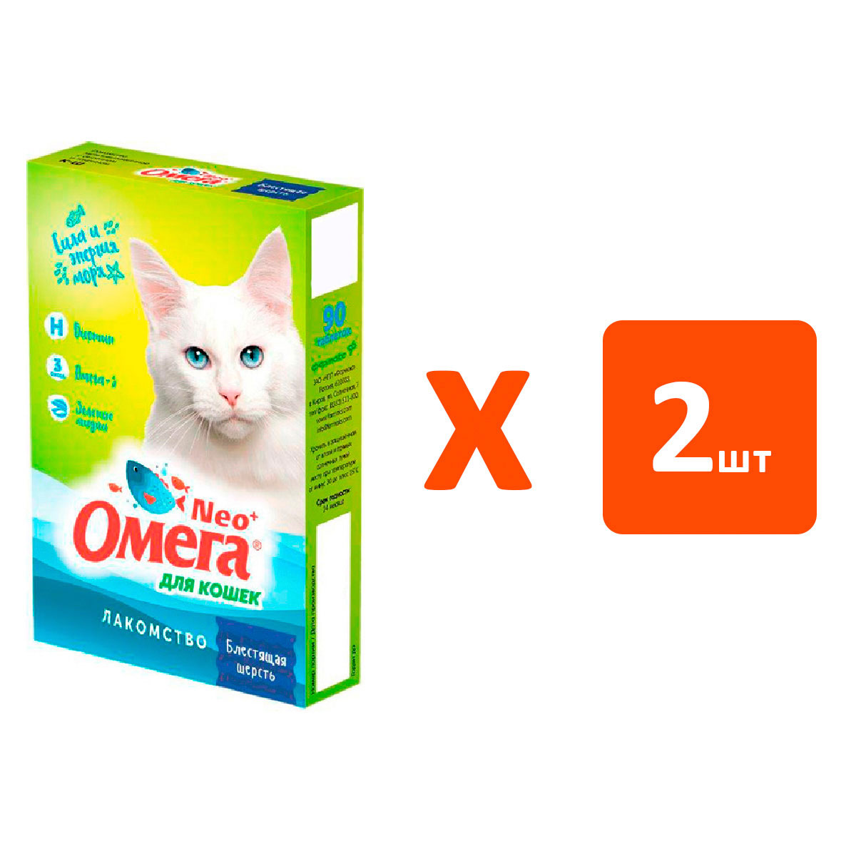 Лакомство для кошек ОМЕГА NEO+ Блестящая шерсть биотин, таурин (90 шт х 2)