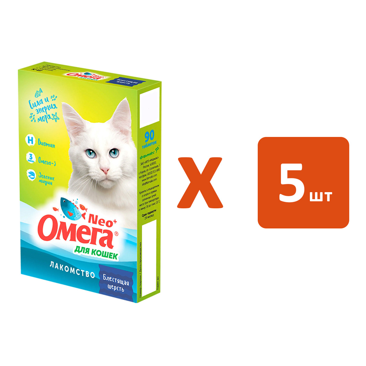 Лакомство для кошек ОМЕГА NEO+ Блестящая шерсть биотин, таурин (90 шт х 5)
