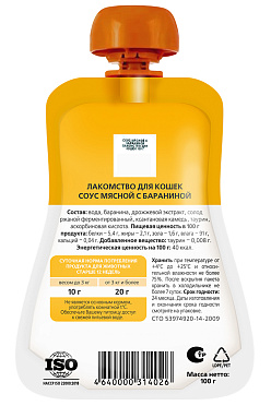 Состав: вода, баранина, дрожжевой экстракт, солод ржаной ферментированный, ксантановая камедь, таурин, аскорбиновая кислота.
