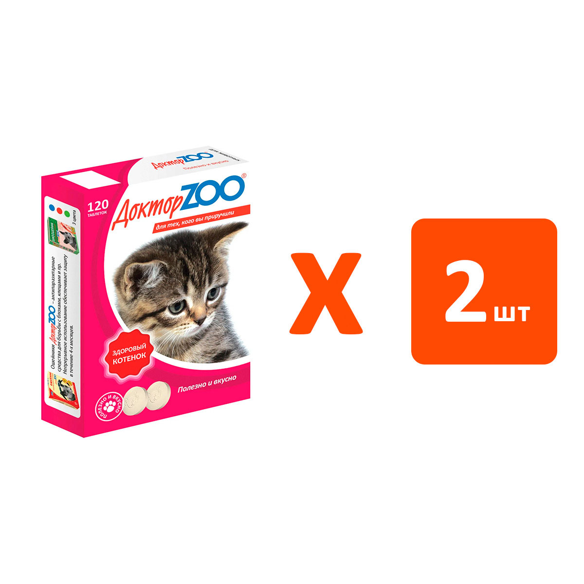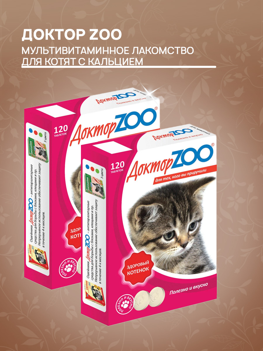 Лакомство для котят ДОКТОР ZOO ЗДОРОВЫЙ КОТЕНОК мультивитаминное кальций (120 т х 2 шт)