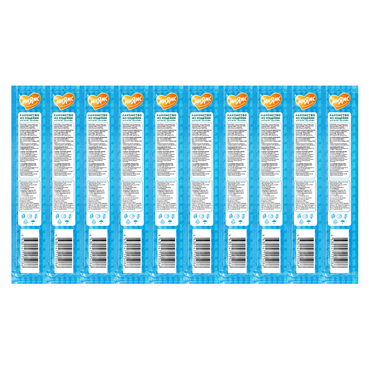 Лакомство для котят МНЯМС лакомые палочки индейка (5 гр)