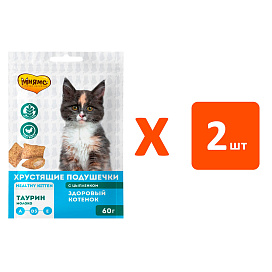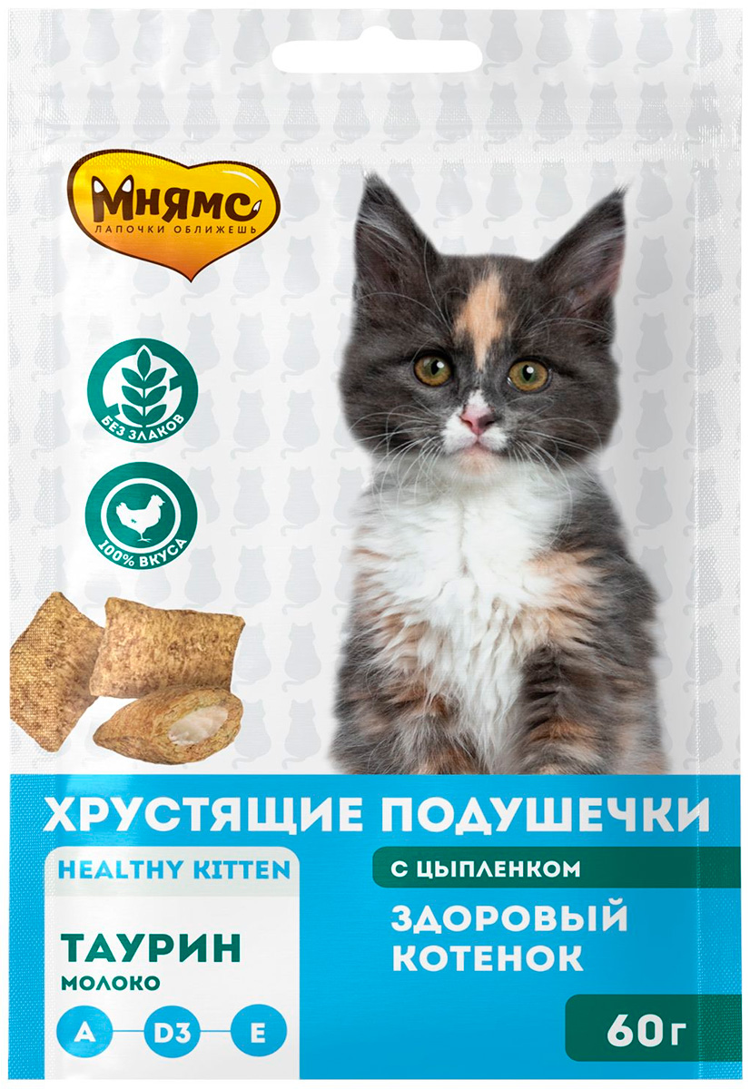 Лакомство для котят МНЯМС ЗДОРОВЫЙ КОТЕНОК хрустящие подушечки цыпленок, молоко (60 гр х 2 шт)
