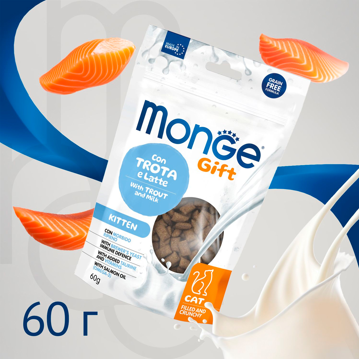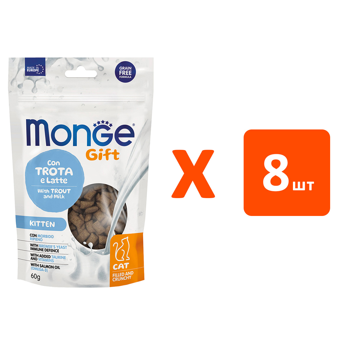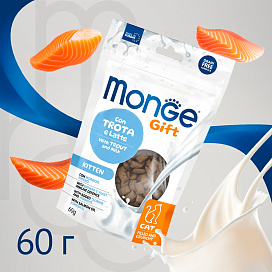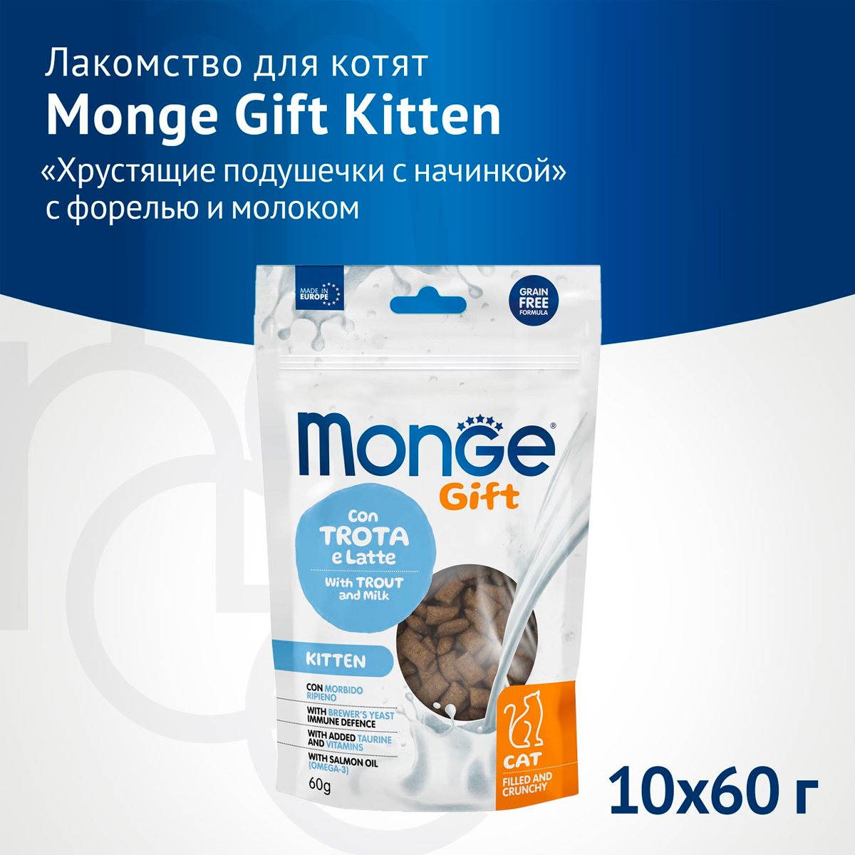 Лакомство для котят MONGE GIFT KITTEN подушечки форель, молоко 60 гр (1 шт х 8)