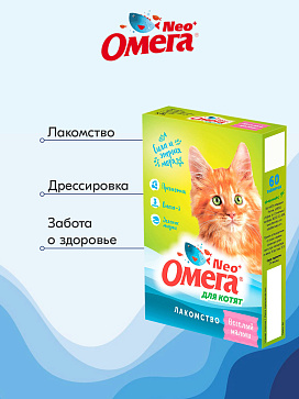 Омега Neo+ — вкусное и полезное лакомство для поощрения, баловства и поддержания здоровья котят в период активного роста.