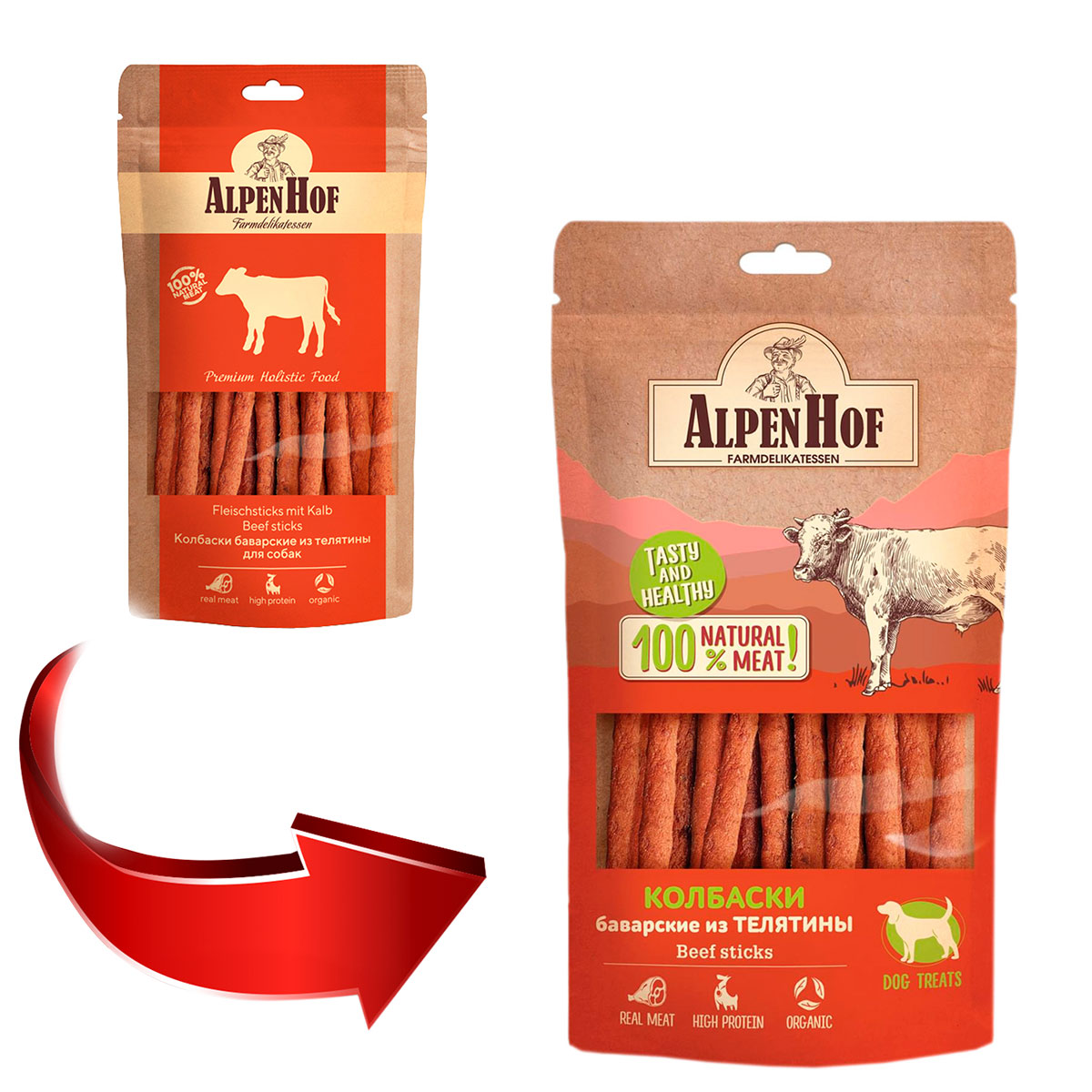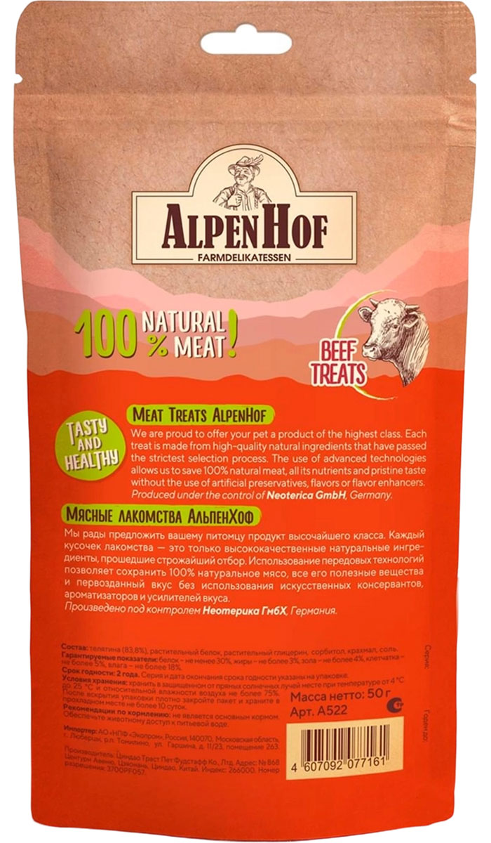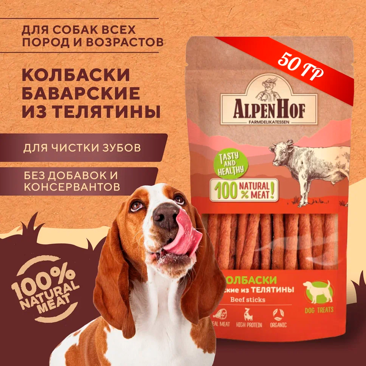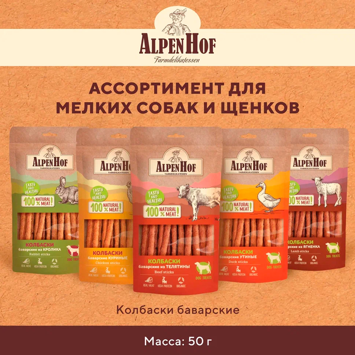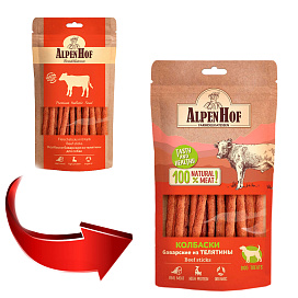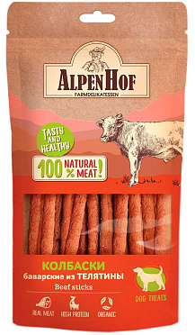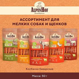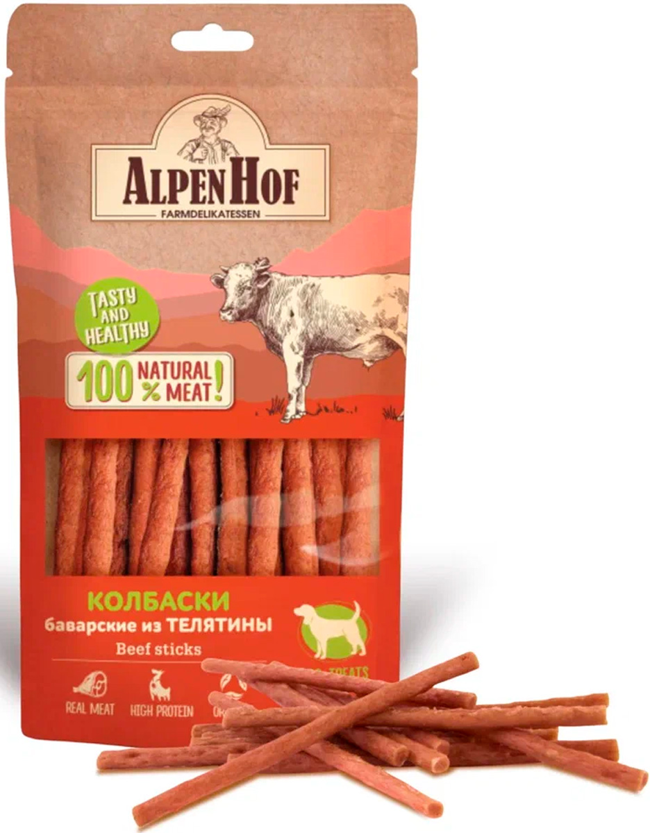 AlpenHof колбаски баварские с телятиной для собак всех пород – это натуральное мясное лакомство класса холистик. Превосходное угощение для любимой собаки.