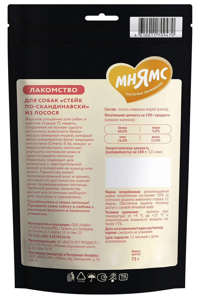 Лакомство для собак МНЯМС DELICATESSE стейк по-скандинавски (75 гр)