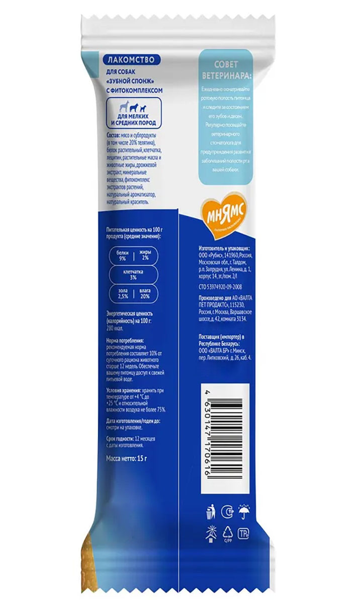 Лакомство для собак МНЯМС DENTAL зубные спонжи 15 гр (1 шт)
