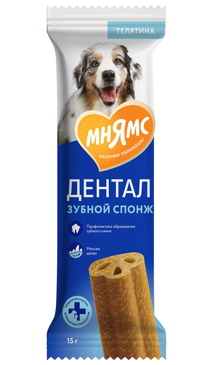 Вкусное и полезное лакомство МНЯМС DENTAL Зубные спонжи для взрослых собак и щенков старше 3-х месяцев.