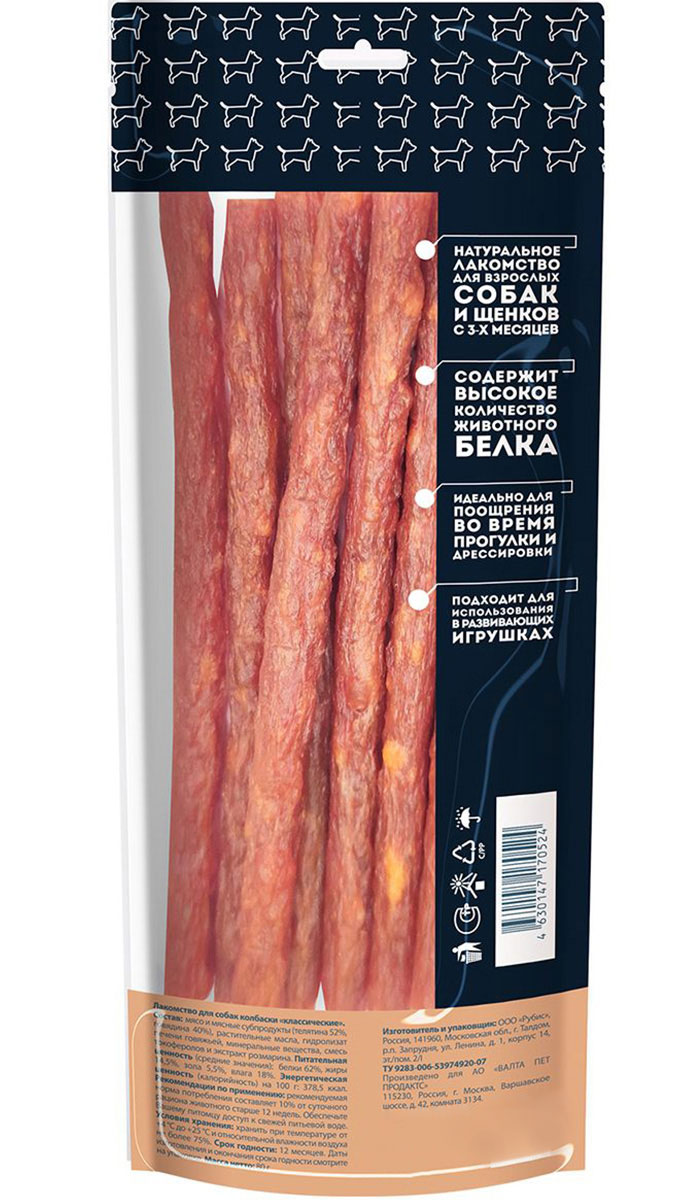 Мнямс мягкие классические колбаски - вкусное и полезное лакомство с большим содержанием мяса для собак и щенков старше 3-х месяцев.