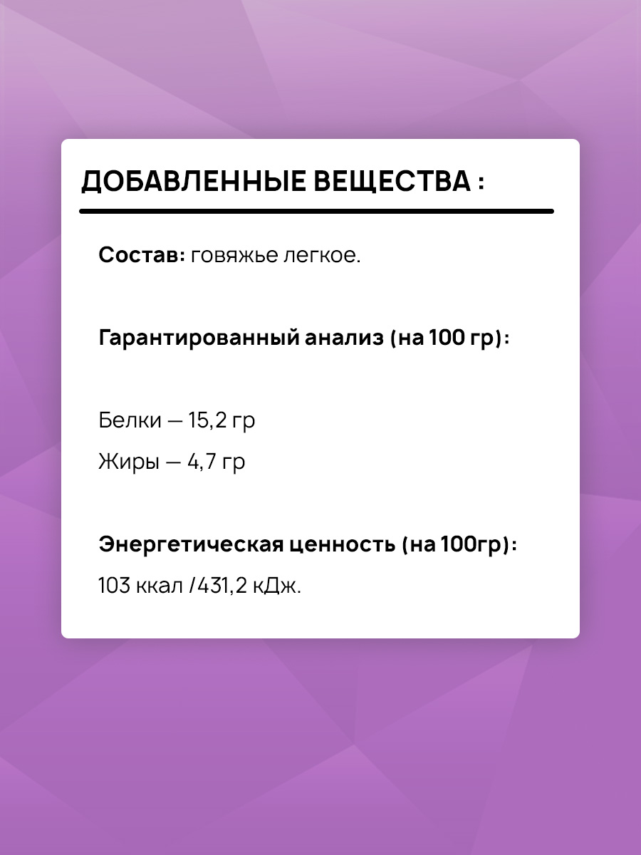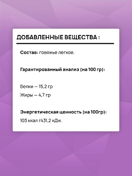 При изготовлении учли все пожелания владельцев и домашних питомцев. Лакомства сделаны с помощью умной технологии сушки мяса без воздействия тепла. Такой способ помогает сохранить все полезные свойства и вкус мяса.