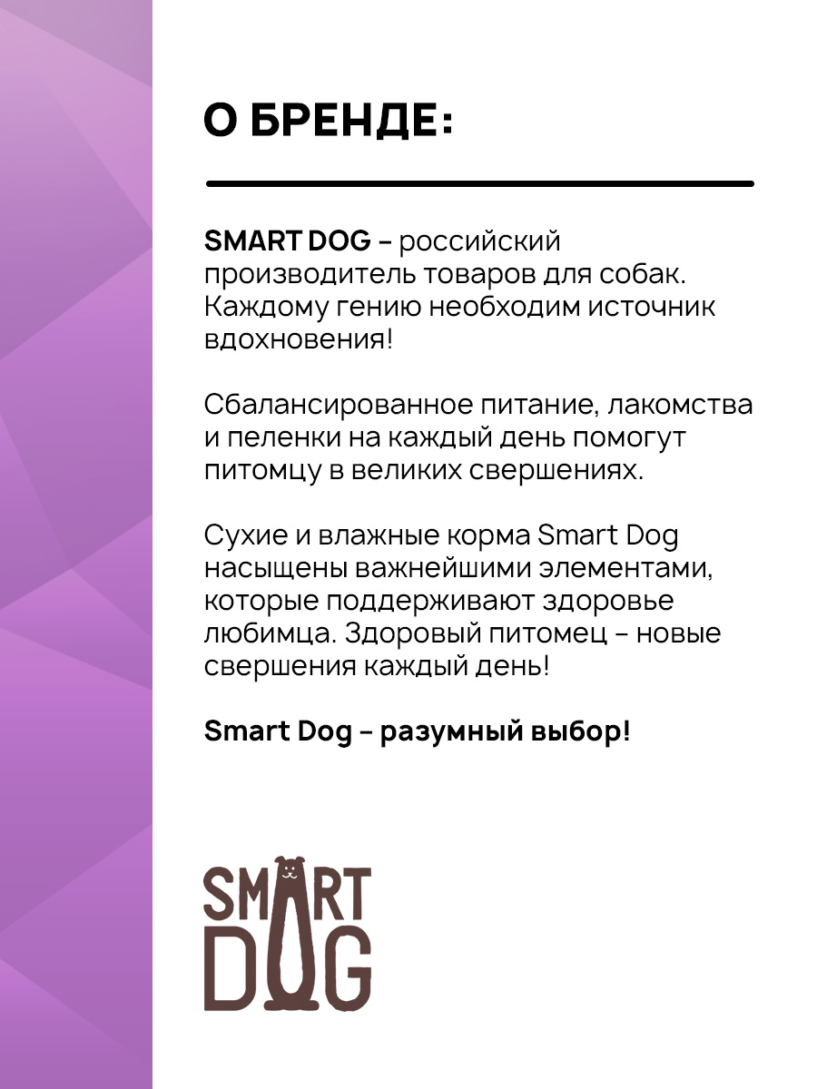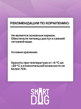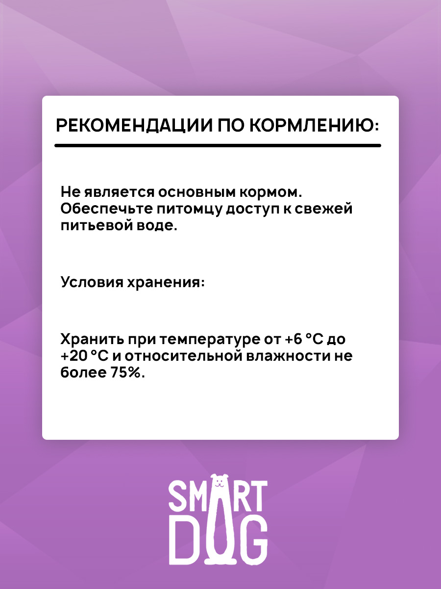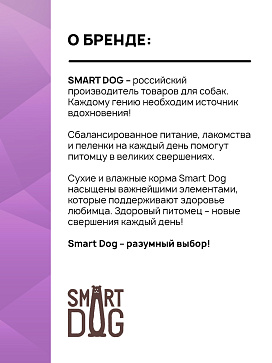 Достижения и прилежное поведение нужно поощрять, лакомства Smart Dog станут отличной наградой и поднимут настроение Вашему хвостику.