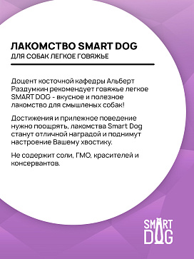 Доцент косточной кафедры Альберт Раздумкин рекомендует говяжье легкое SMART DOG - вкусное и полезное лакомство для смышленых собак!