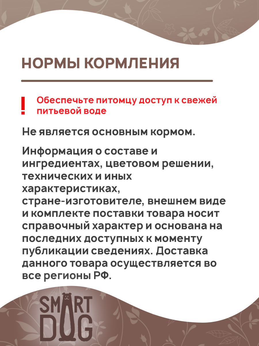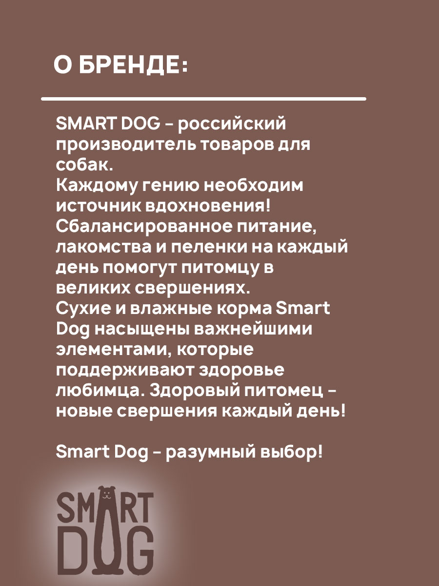 Достижения и прилежное поведение нужно поощрять, лакомства Smart Dog станут отличной наградой и поднимут настроение Вашему хвостику.