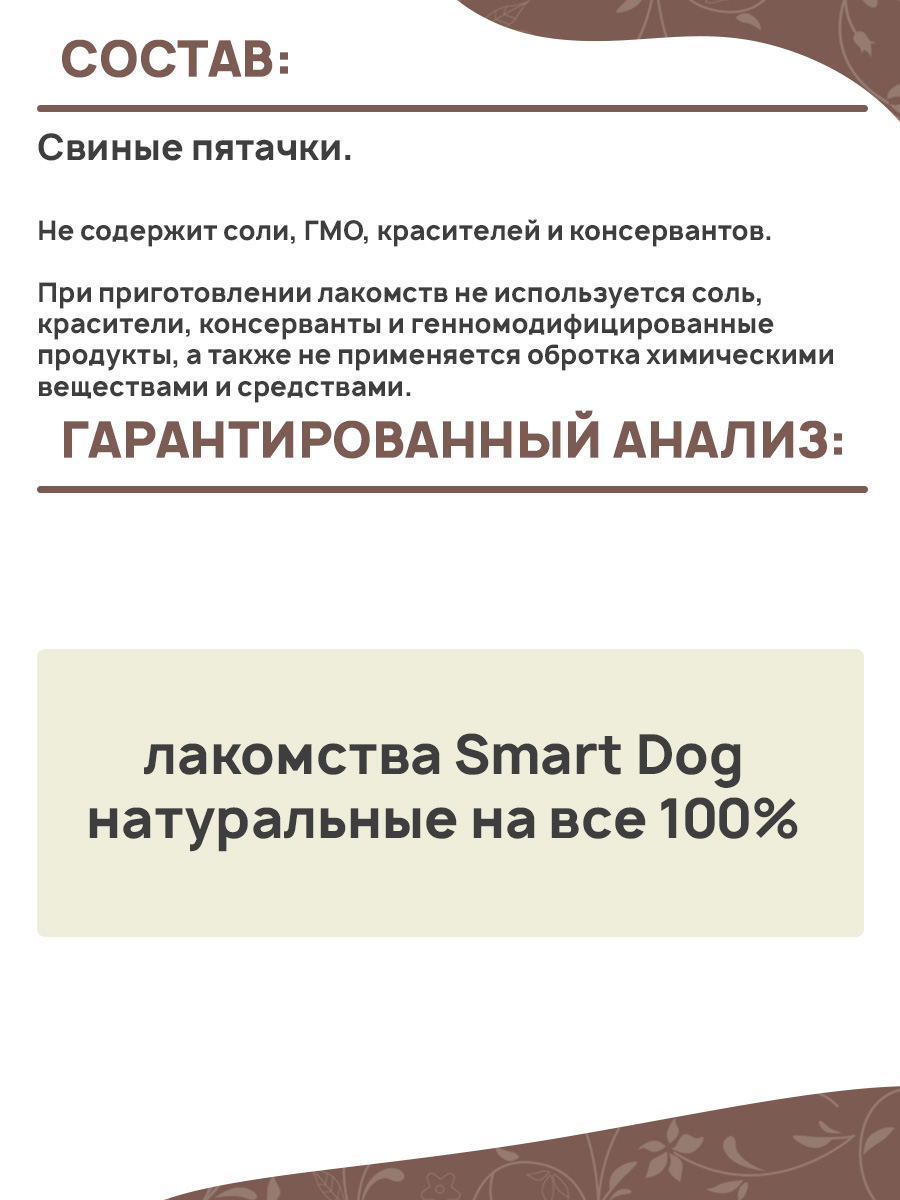 веществами и средствами. Поэтому лакомства Smart Dog натуральные на все 100%.
