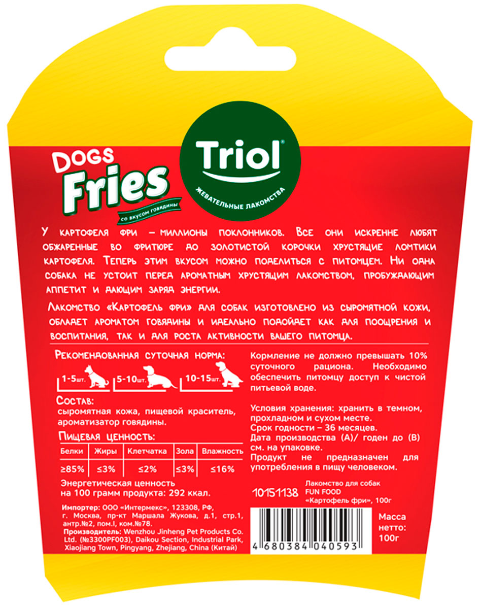 Лакомство для собак TRIOL FUN FOOD картофель фри (100 гр)