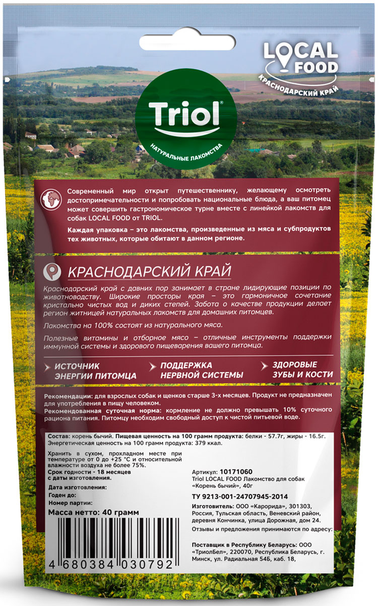Лакомство для собак TRIOL корень бычий 40 гр (1 шт)Возраст питомца