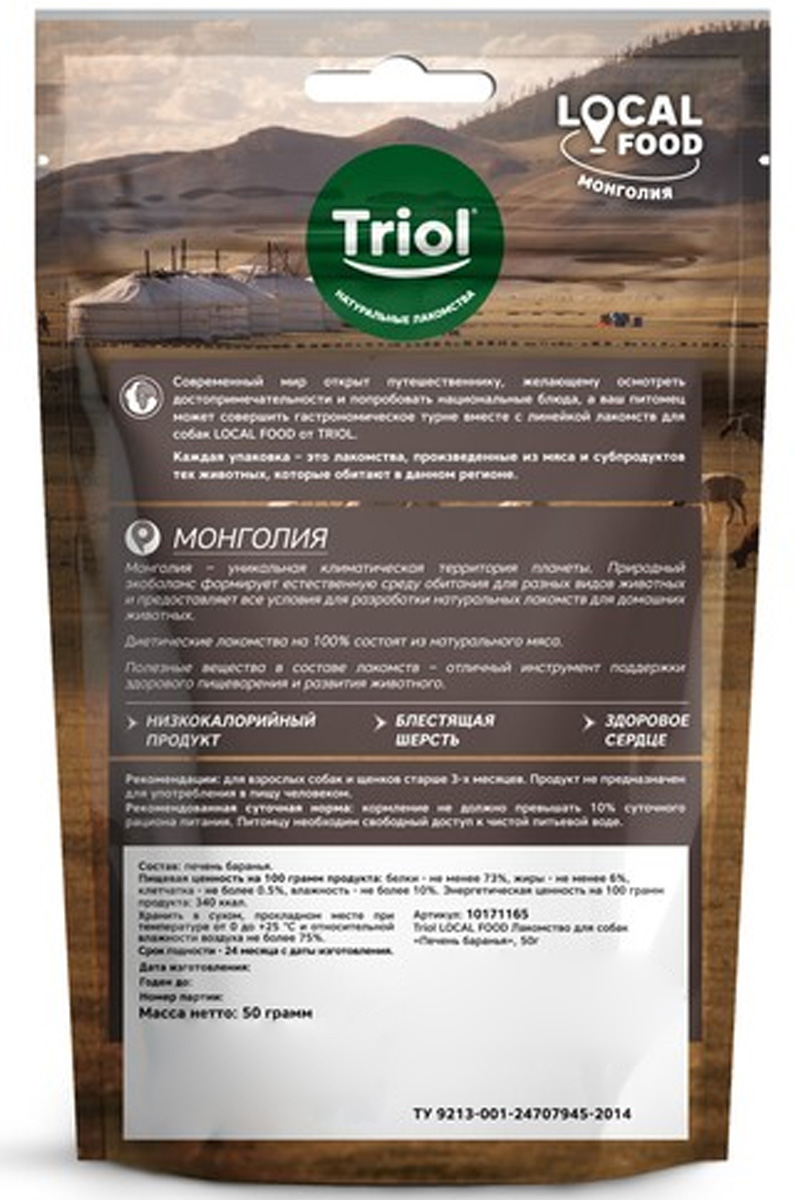 Лакомство для собак TRIOL LOCAL FOOD печень баранина (50 гр)