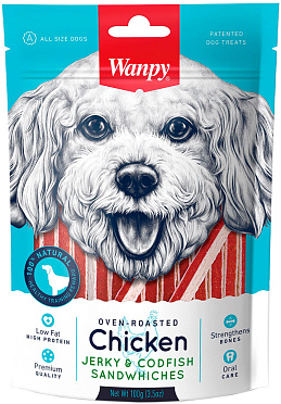 Лакомство для собак WANPY сэндвичи курица, треска (100 гр)
