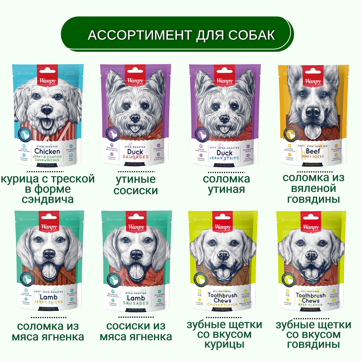 Лакомства Wanpy рекомендуются давать в виде дополнения к основному питанию.
