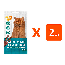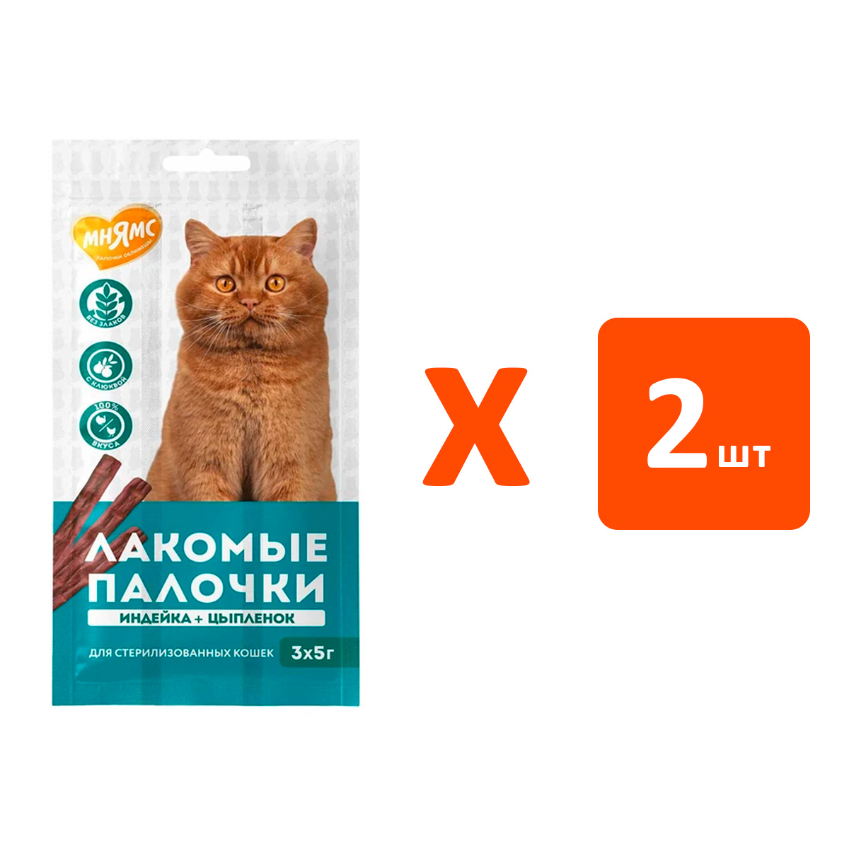 Лакомство для взрослых кастрированных котов и стерилизованных кошек МНЯМС палочки индейка, цыпленок уп. 3 шт по 5 гр (1 шт х 2)