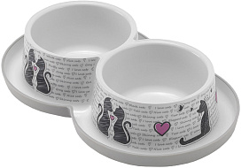 Миска двойная для кошек и собак Moderna Trendy Dinner Влюбленные кошки 27 х 16,5 х 6 см (1 шт)Страна-производитель
