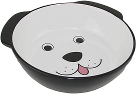 Dogman Собачья радость - это оригинальная миска для собак из керамики с ушками, с забавным рисунком мордочки на дне.