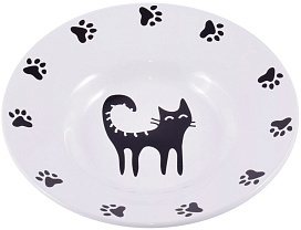 забавной миской-блюдцем с кошкой.