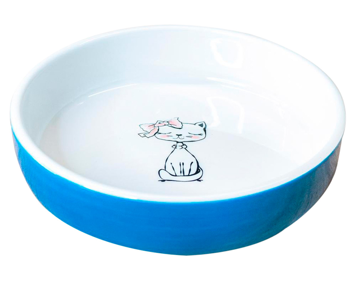 Миска керамическая Mr.Kranch для кошек Кошка с бантиком голубая 370 мл (370 мл)