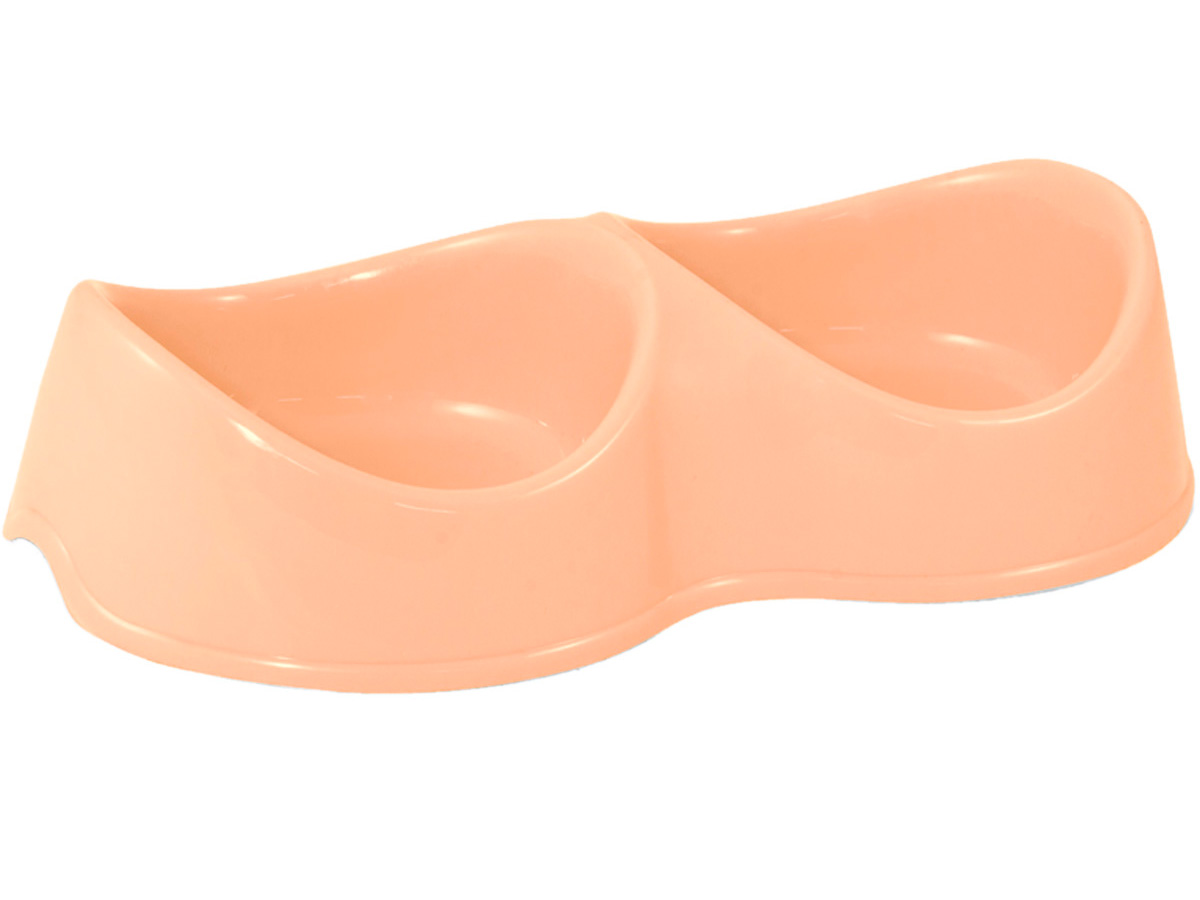 Двойная миска для кошек и собак мелких пород выполнена из качественного полипропилена пастельных тонов.