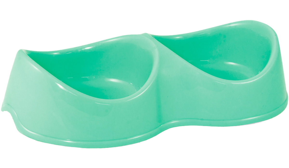 Миска пластиковая двойная Gamma Бисквит бирюзовая 2 х 0,2 л (1 шт)