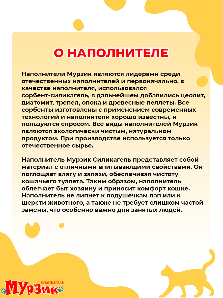 Мурзик Силикагель – силикагелевый наполнитель для туалета Вашего питомца.