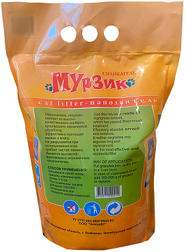 Наполнитель Мурзик Силикагель упакован в красочную, прочную и экологически чистую упаковку, на которой в полной мере дана информация о товаре и его производителе.