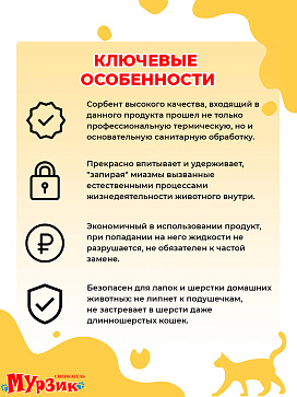 Мурзик Силикагель – это экономичный наполнитель, который не требует немедленной замены после того, как Ваш питомец посетил лоток. Силикагель отлично впитывает влагу и запахи.