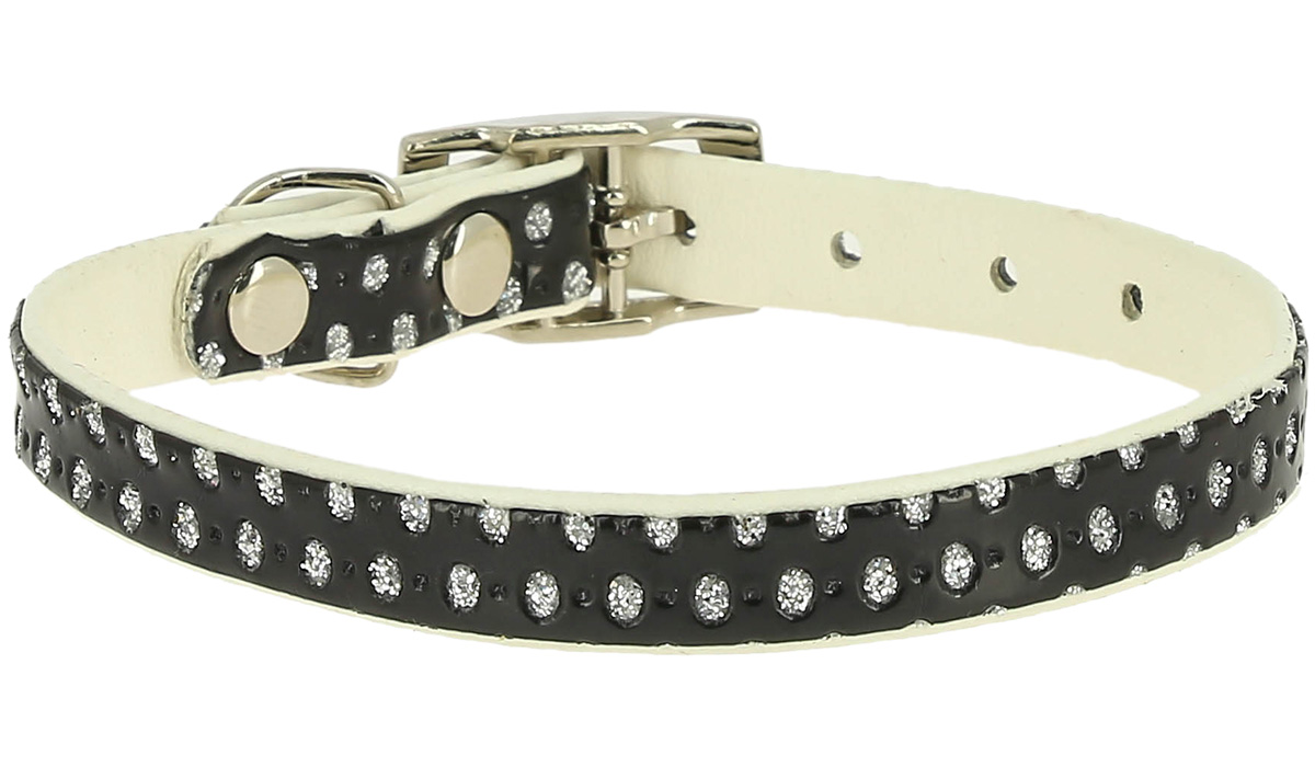Ошейник для кошек Каскад Synthetic двойной с блестками и бубенчиком черный 10 мм 28 см (1 шт)
