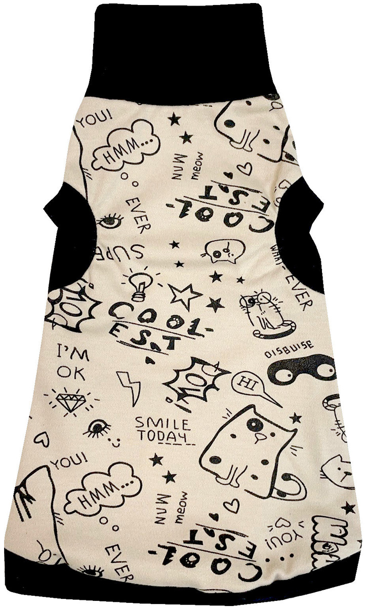 Мягкая, теплая и стильная водолазка для кошек с забавным принтом OSSO Fashion.