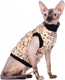Удобная и практичная водолазка подарит кошке тепло и уют в холодную погоду, спасет от сквозняка, а забавный принт будет радовать ее хозяев.