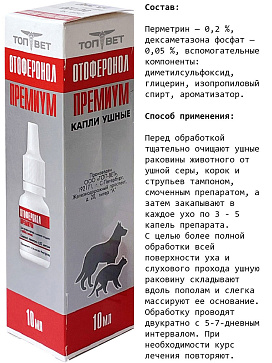 ОТОФЕРОНОЛ ПРЕМИУМ капли ушные для собак и кошек при отитах 10 мл (1 шт)