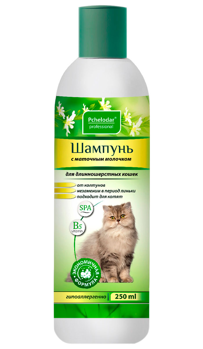 ПЧЕЛОДАР шампунь для длинношерстных кошек с маточным молочком 250 мл (1 шт)