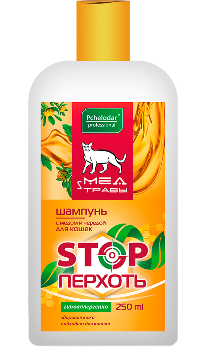 ПЧЕЛОДАР STOP ПЕРХОТЬ шампунь для кошек с медом и чередой 250 мл (1 шт)