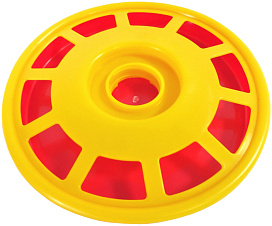 Поилка под 5 литровую бутылку вакуумного типа диаметром основания 30 см - хорошее безопасное устройство для одновременного поения десяти пернатых. Поилка необходима для зрелых особей кур, перепелов, уток, гусей, индюков при напольном содержании.