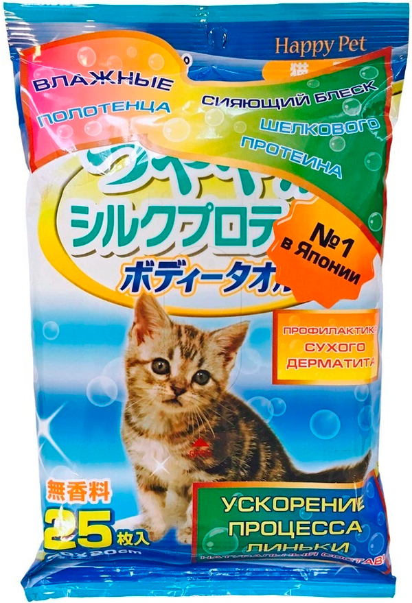 Полотенца шампуневые Premium Pet Japan для кошек экспресс-купание без воды для ускорения процесса линьки с шелковым протеином и экстрактом меда 25 шт (1 уп)