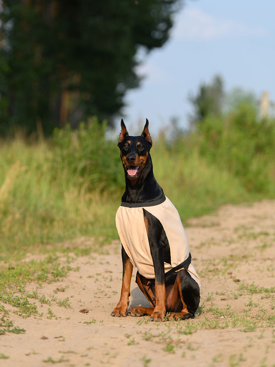 Размер попоны соответствует длине спины собаки.