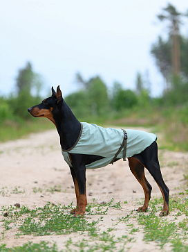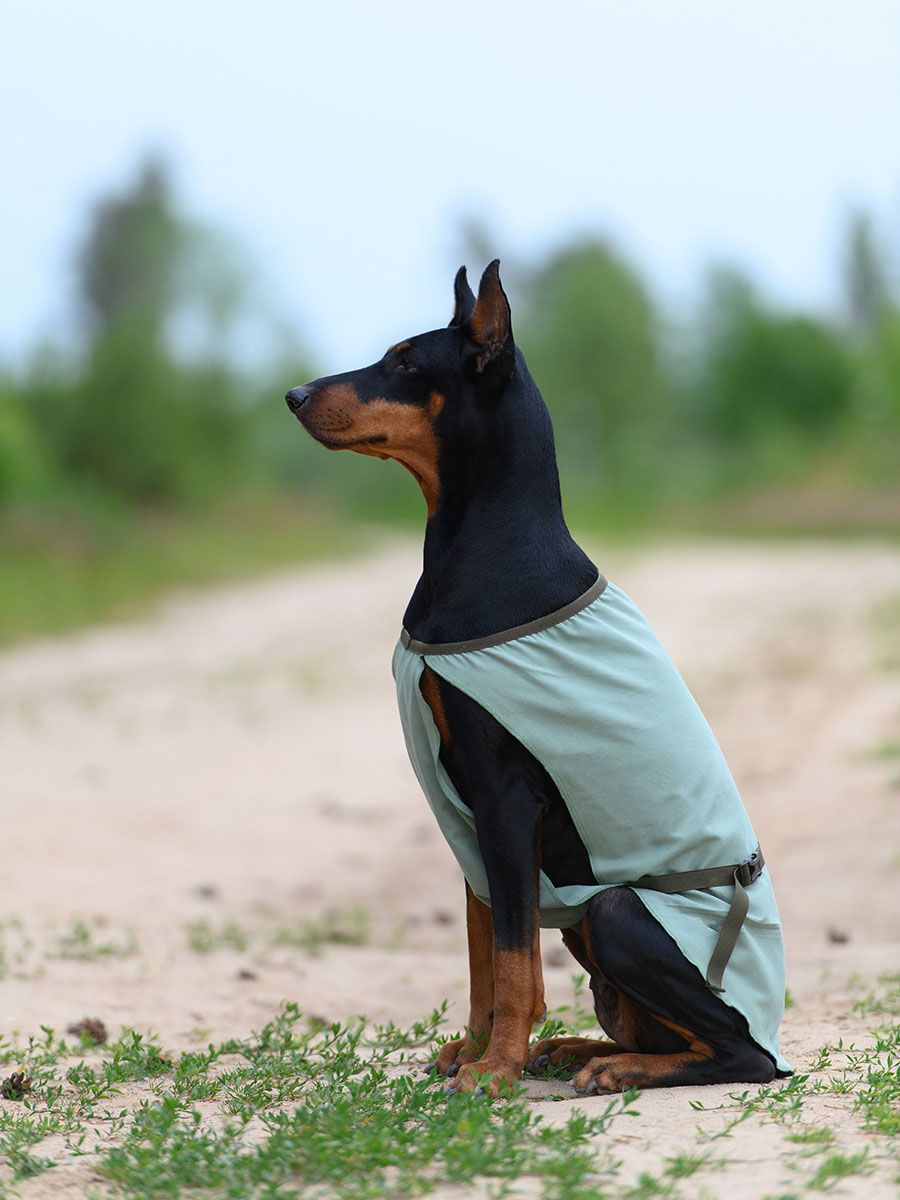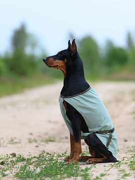 Размер попоны соответствует длине спины собаки.