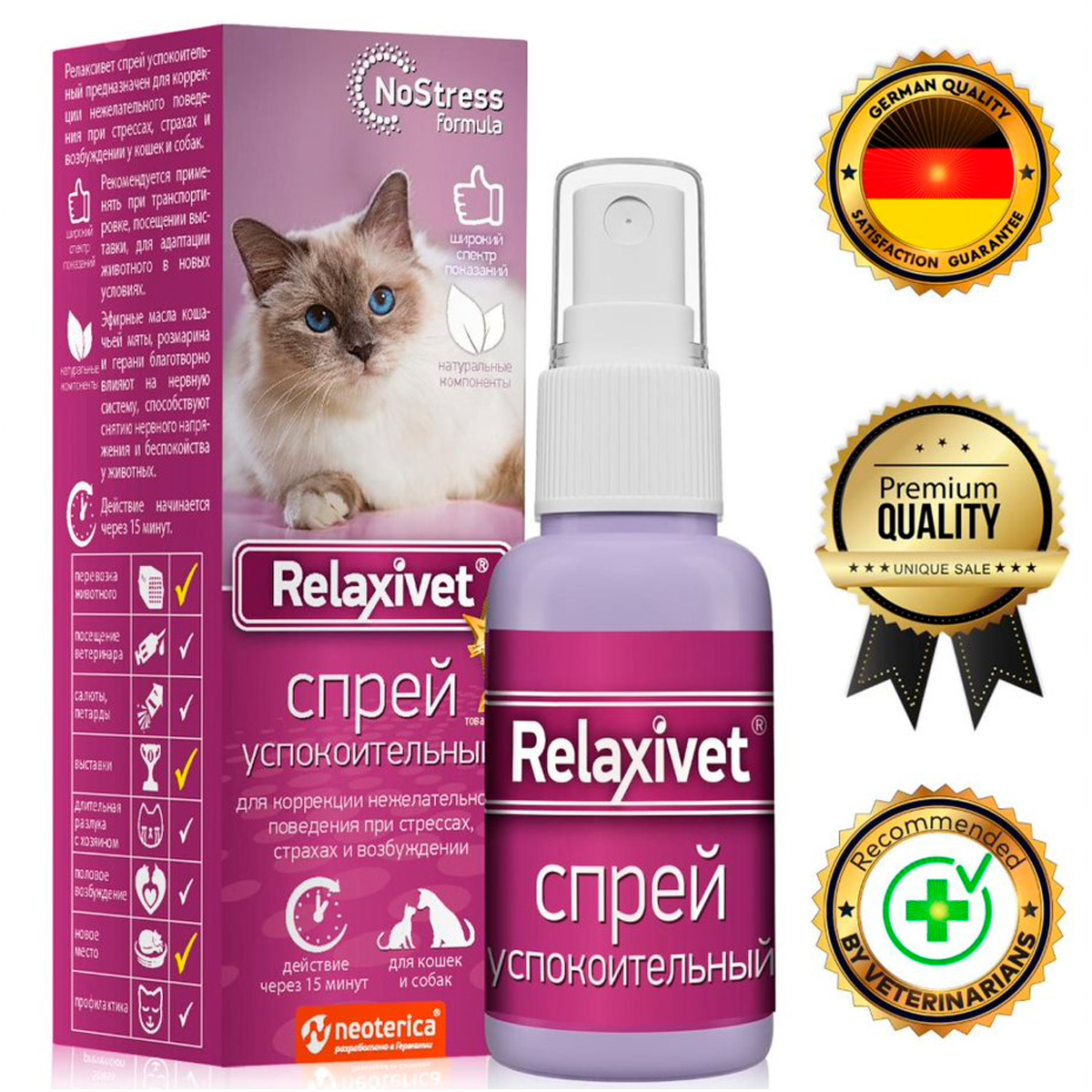 Составы RELAXIVET разработаны компанией Neoterica (Германия).