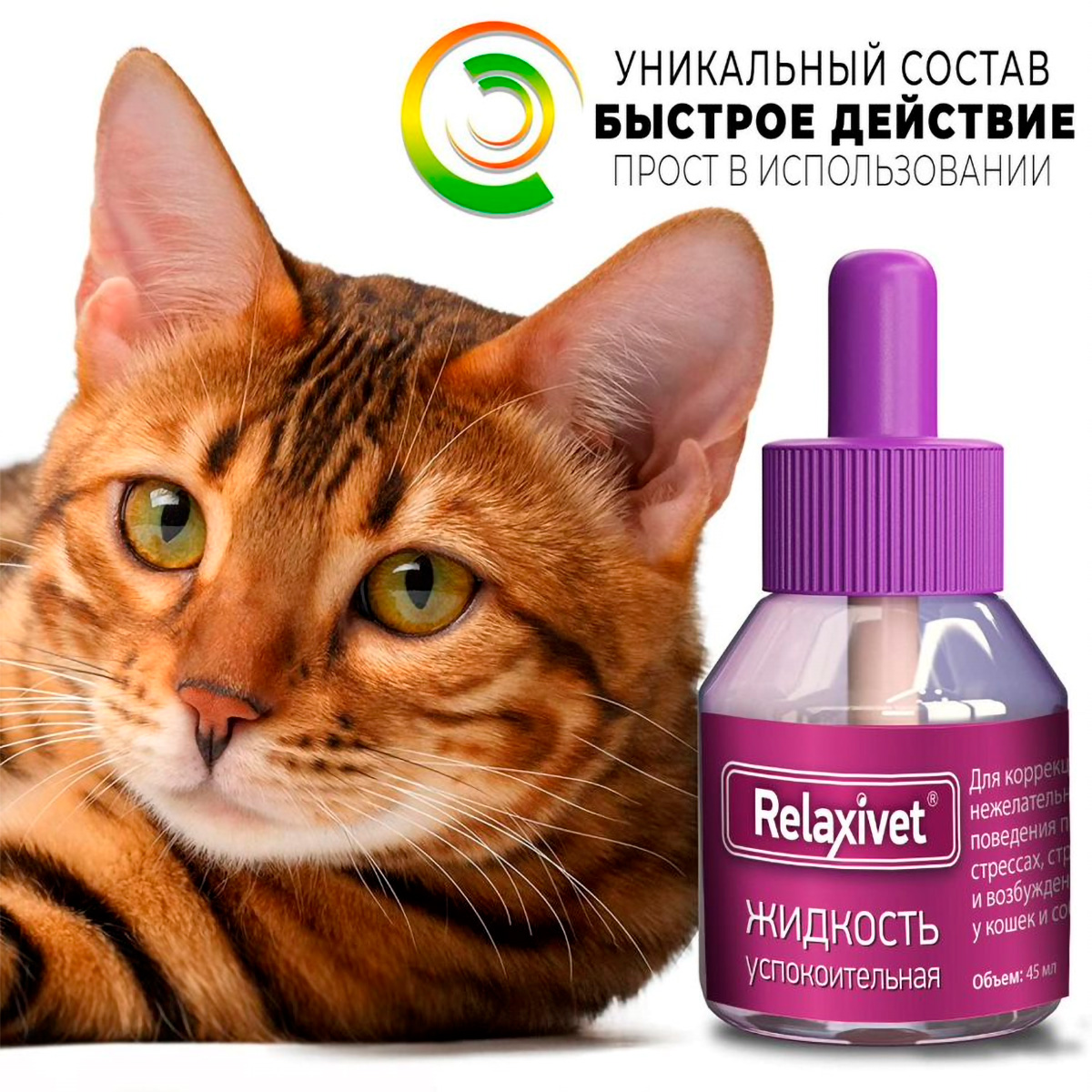RELAXIVET жидкость успокоительная для кошек и собак (45 мл)Назначение товара