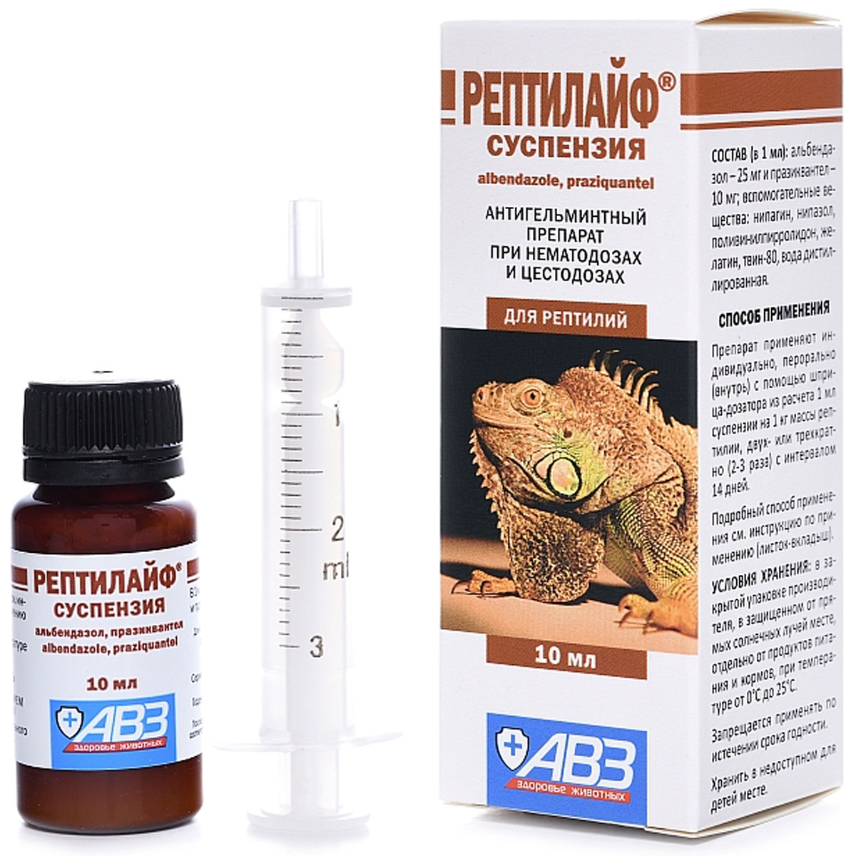 РЕПТИЛАЙФ СУСПЕНЗИЯ антигельминтик для рептилий АВЗ (10 мл)