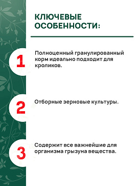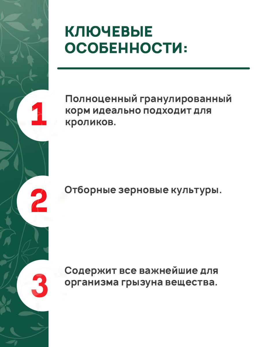 - Полноценный гранулированный корм идеально подходит для кроликов.
